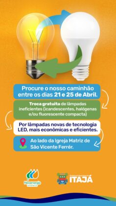 Entre os dias 21 e 25 de abril, procure o caminhão e aproveite a troca gratuita de lâmpadas antigas por novas de LED, muito mais econômicas e eficientes.
