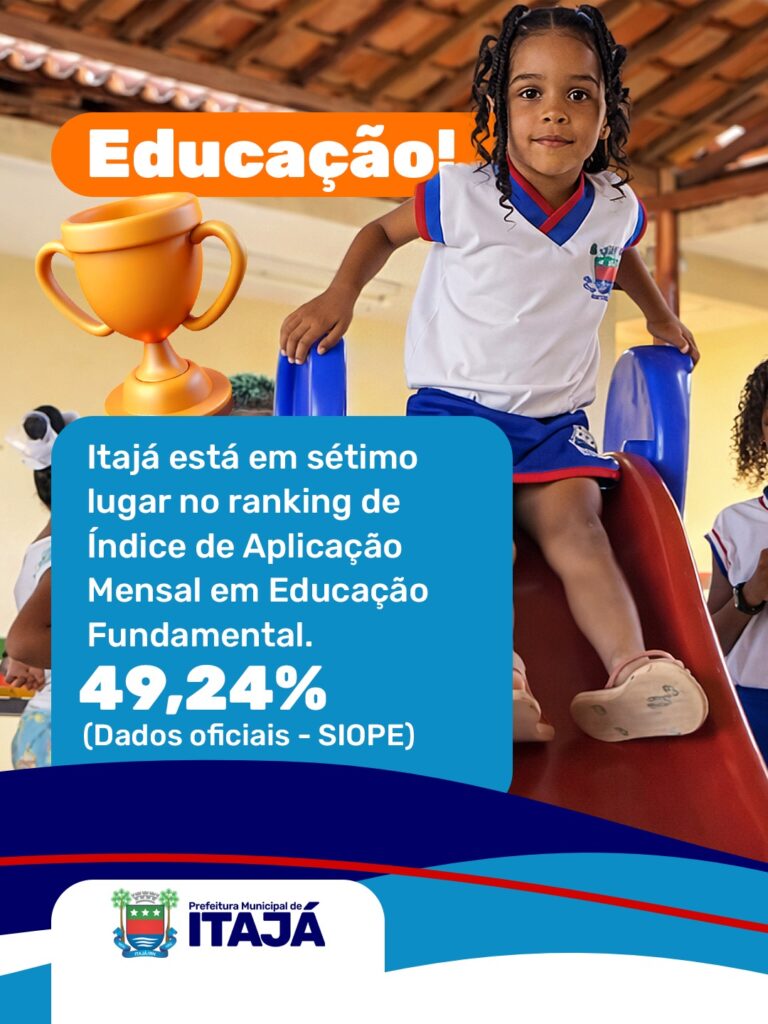 O município de Itajá/RN alcançou o 7º lugar no ranking estadual do Índice de Aplicação Mensal em Educação Fundamental, conforme dados oficiais do Sistema de Informações sobre Orçamentos Públicos em Educação (SIOPE). Com índice de 49,24%, Itajá se destaca entre os municípios potiguares que mais investem na educação, reafirmando o compromisso da gestão municipal com […]